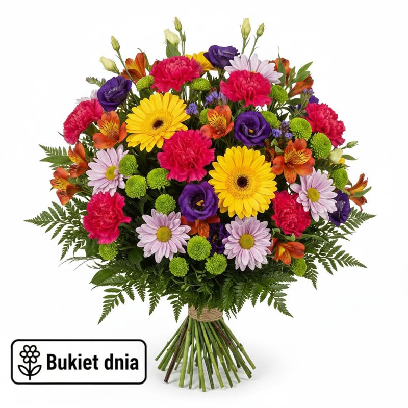 Bukiet Dnia tworzony jest z najświeższych kwiatów dostępnych w kwiaciarni. Każda kompozycja powstaje indywidualnie, z dbałością o estetykę i harmonię. Florystka wykorzystuje kwiaty sezonowe i całoroczne, tworząc bukiet o naturalnym charakterze. To idealny wybór na każdą okazję. Zamów bukiet z dostawą na terenie Jaworzna i spraw miłą niespodziankę.