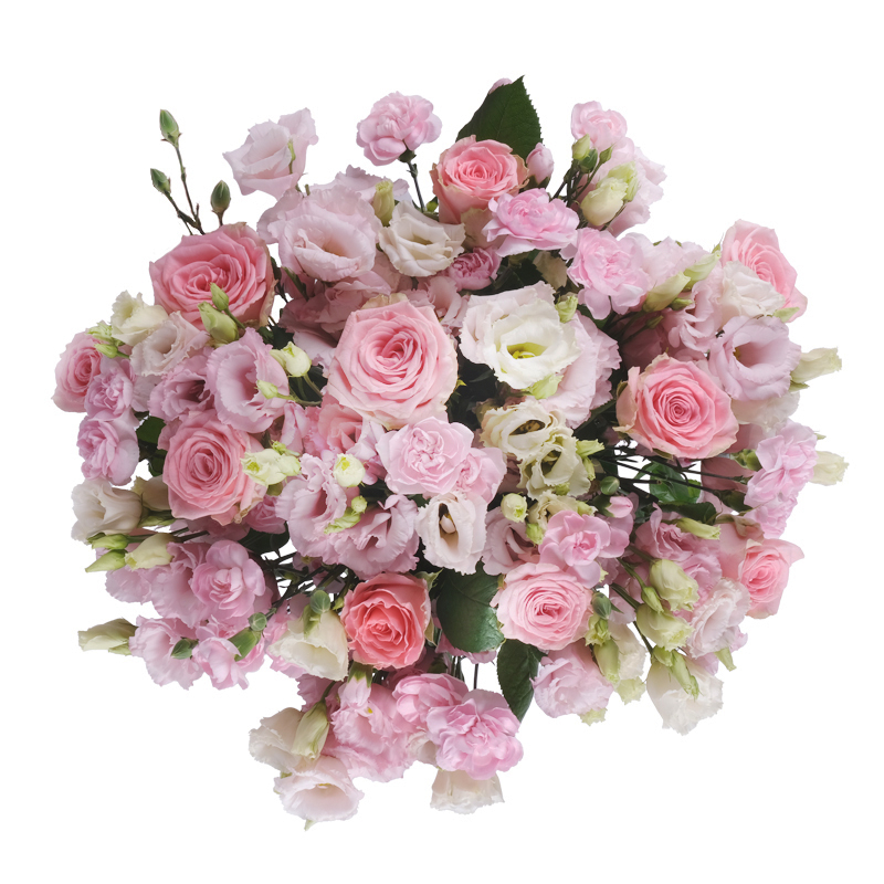 Bukiet „Połączenie idealne” to zmysłowe połączenie trzech gatunków: róży, eustomy i goździka, utrzymanych w delikatnych odcieniach różu. Bilecik z dedykacją dopełni ten gest.